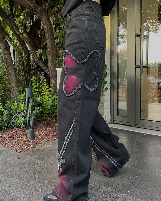 بنطرون جينز اسود فراشة ,قالب طبيعي