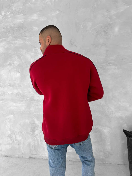 جاكيت برشلونة احمر خط نيلي قطني , قالب كبير