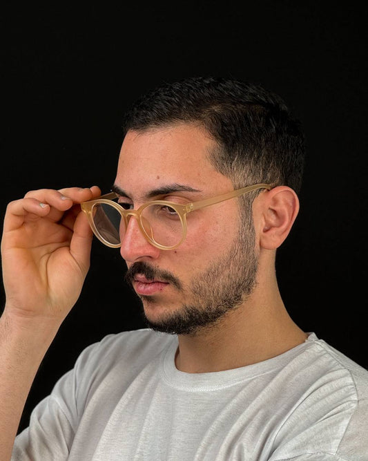 نظارات بتصميم دائري باطار ذهبي شفاف