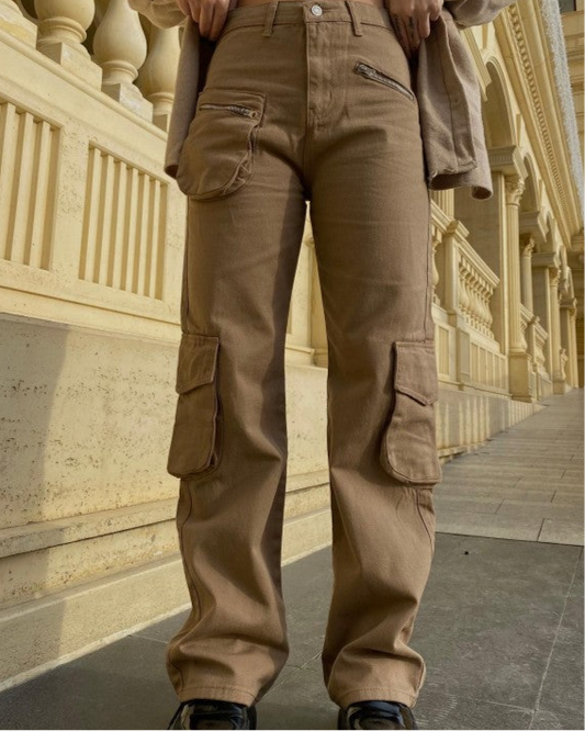 بنطرون جيوب جانبية نسائي بيجي , قالب طبيعي
