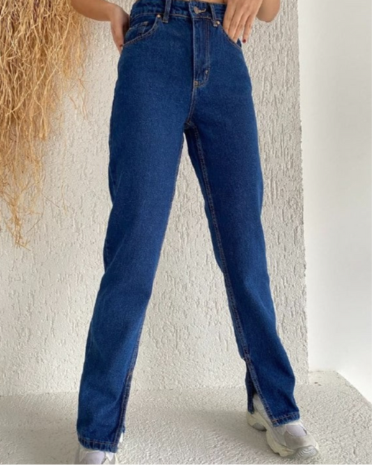بنطرون فتحات من الاسفل نسائي ازرق , قالب طبيعي