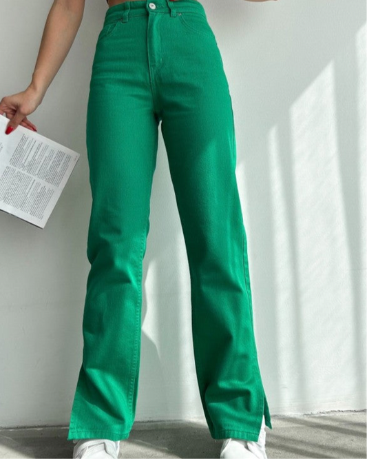 بنطرون فتحات جانبية نسائي اخضر , قالب طبيعي