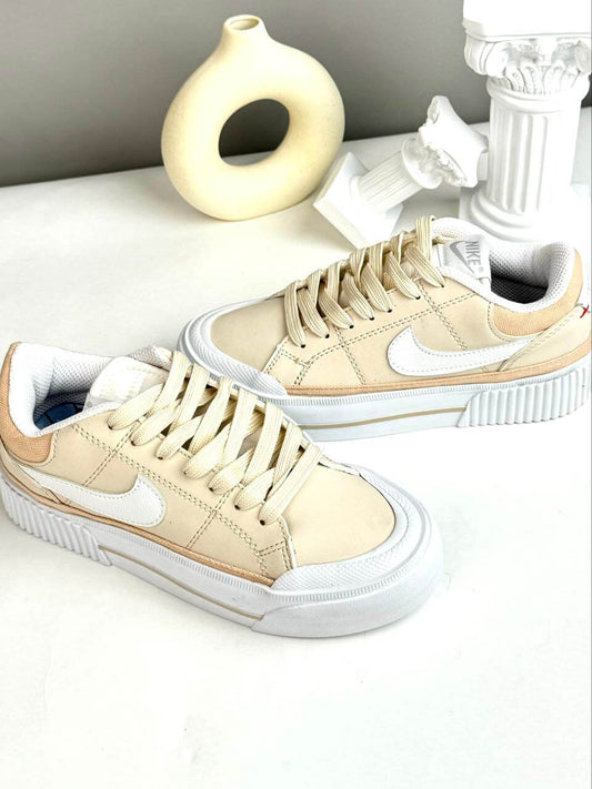 حذاء نايك بيجي وابيض رياضي نسائي ,قالب صغير (القياسات بين 36>40)