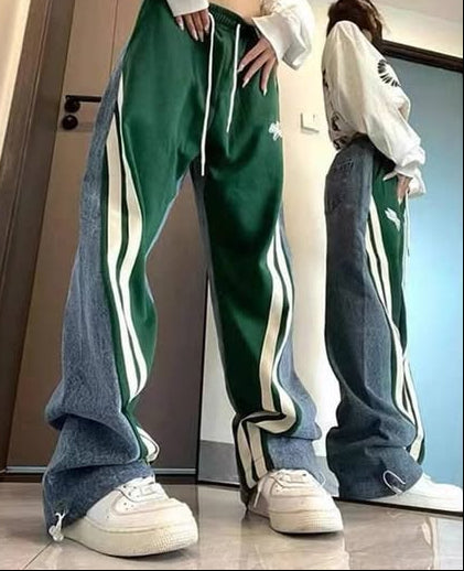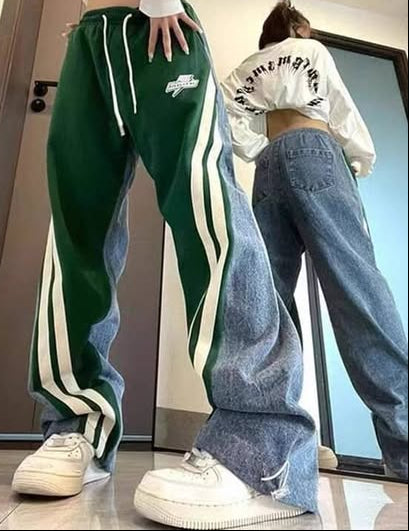 بجامة جينز لونين بخط جانبي لون اخضر *