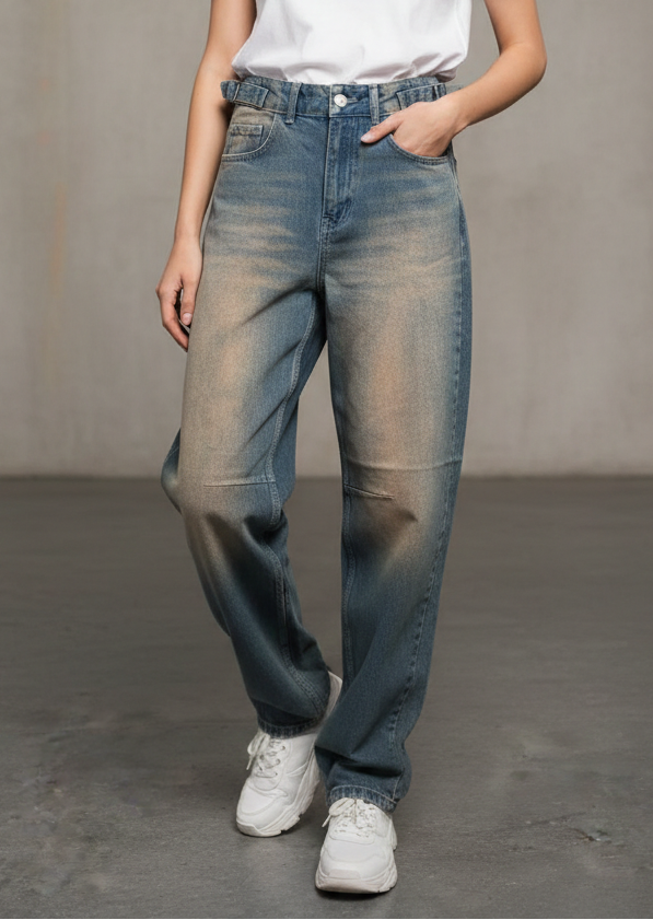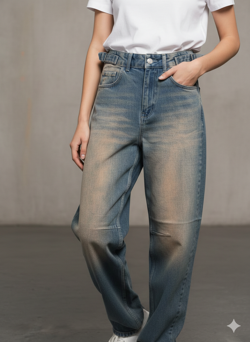بنطرون جينز احزمة جانبية ,قالب طبيعي