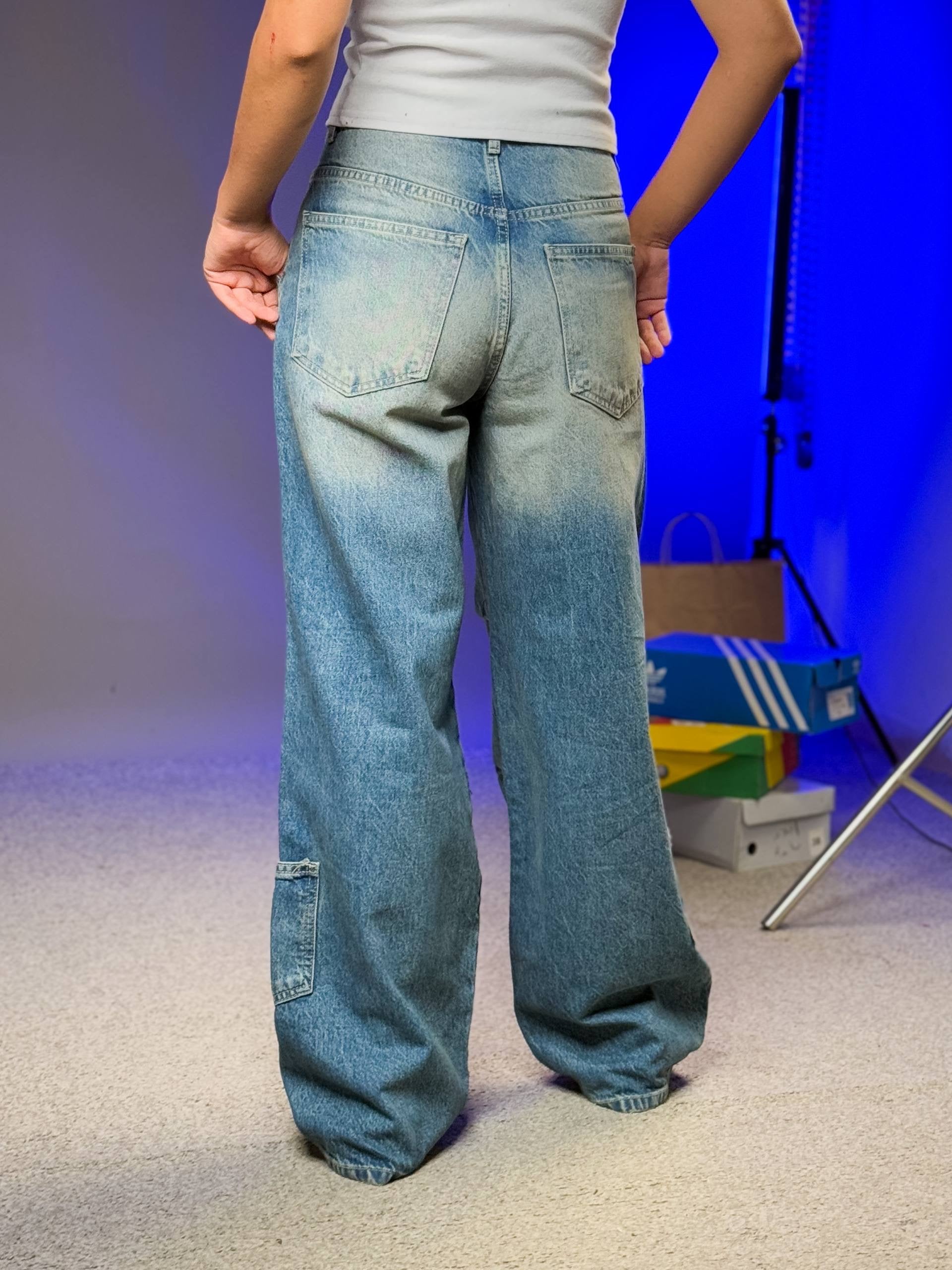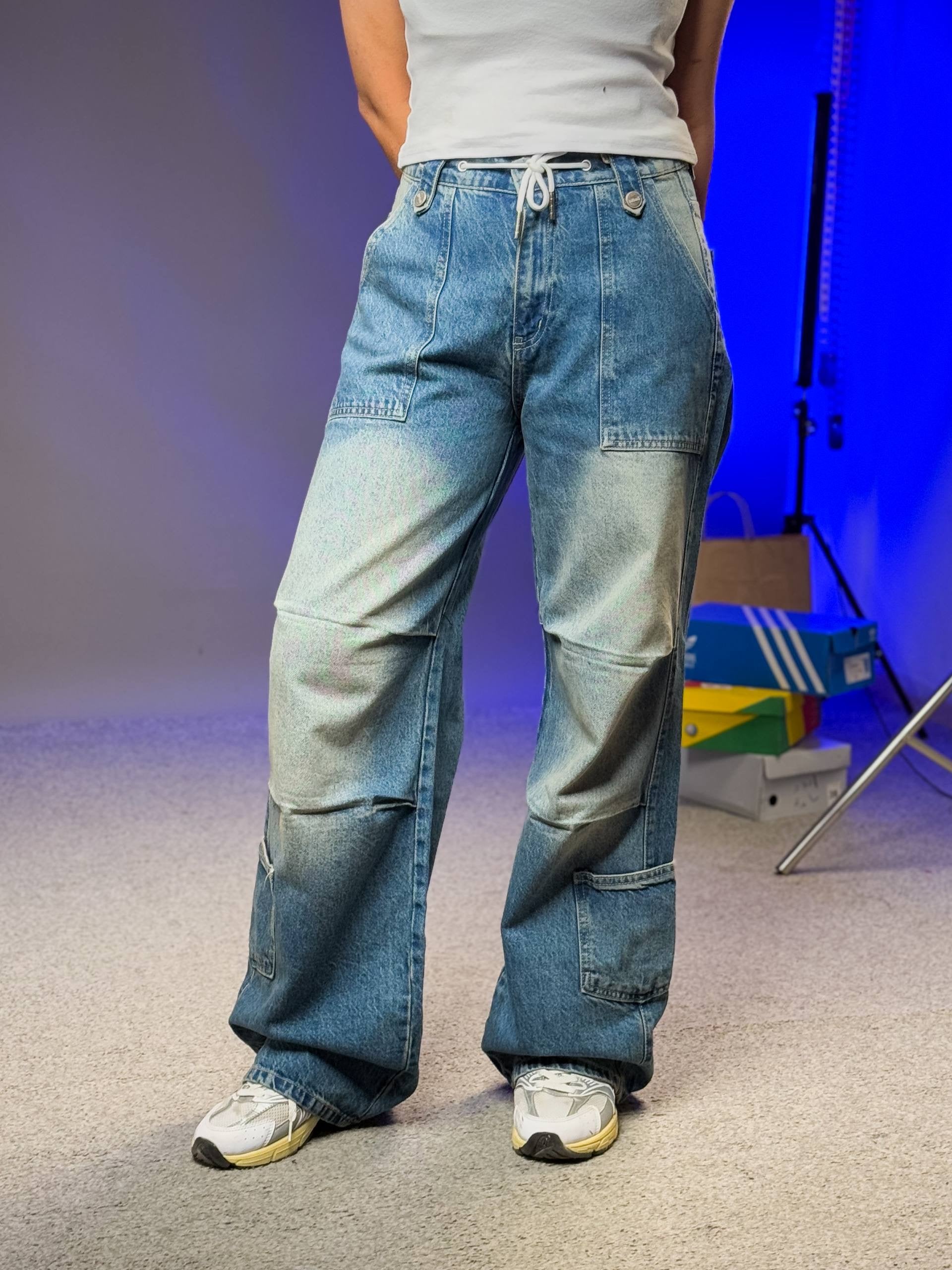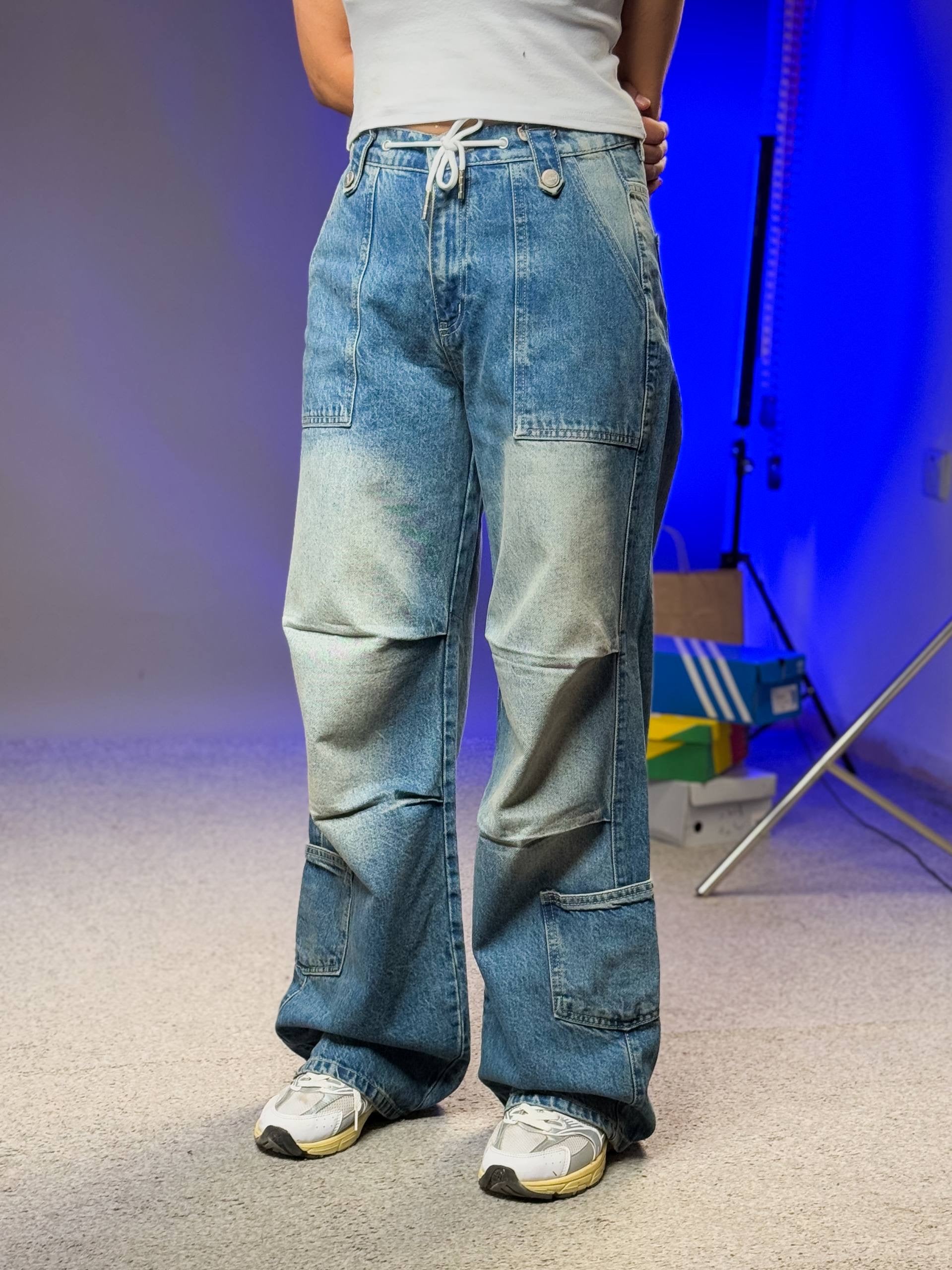 بنطرون جينز اربع جيوب ازرق ورصاصي , ،قالب طبيعي