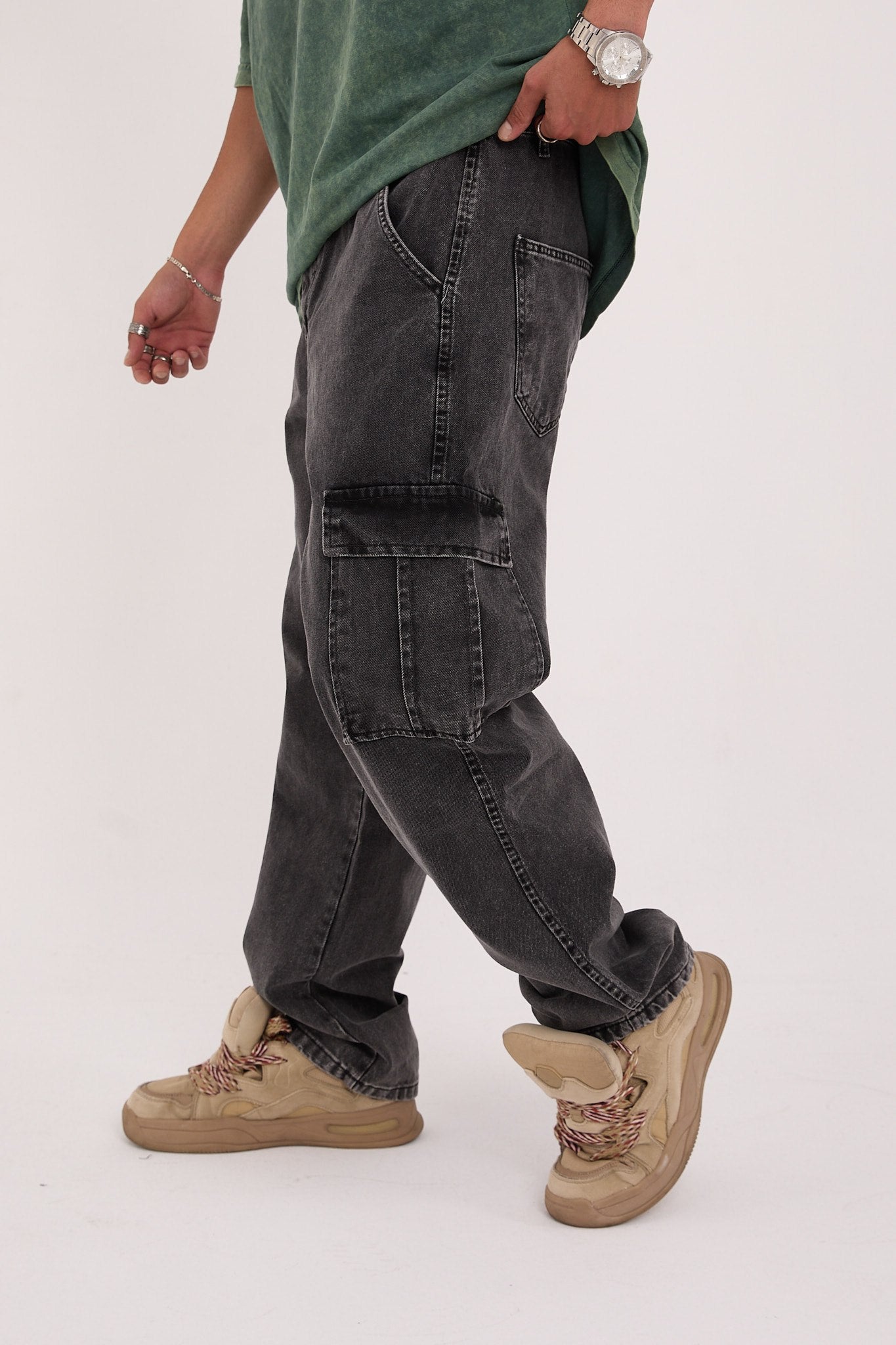 بنطرون جينز كاركو رجالي رمادي غامق , قالب طبيعي