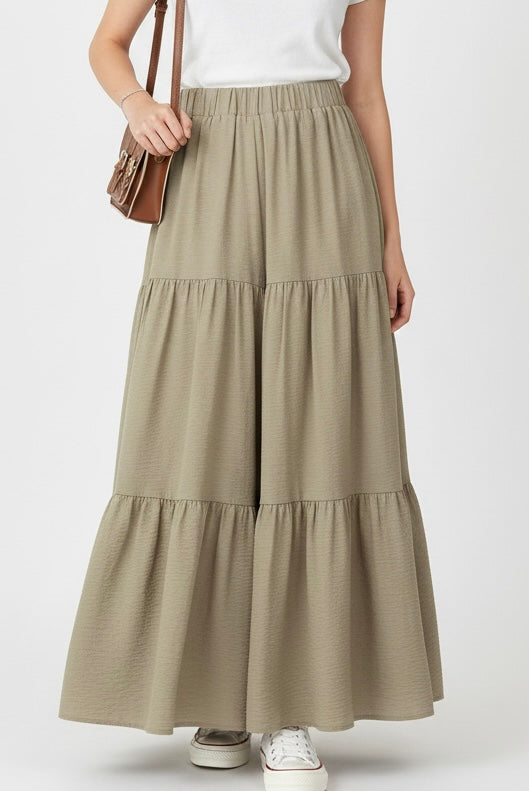 تنورة لون بيجي لاستيك من الخصر , كتان✅