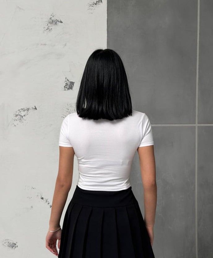 توب بناتي ابيض فيونكة سوداء قصير
