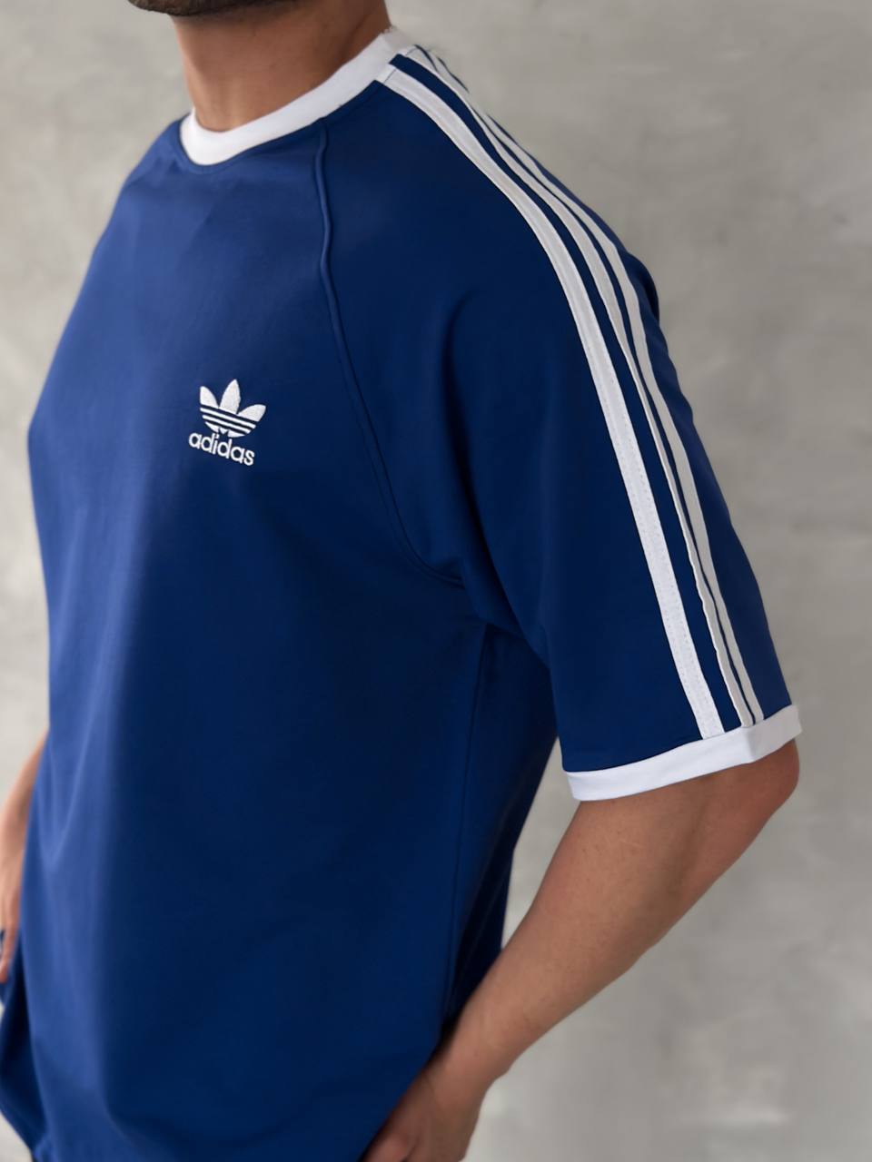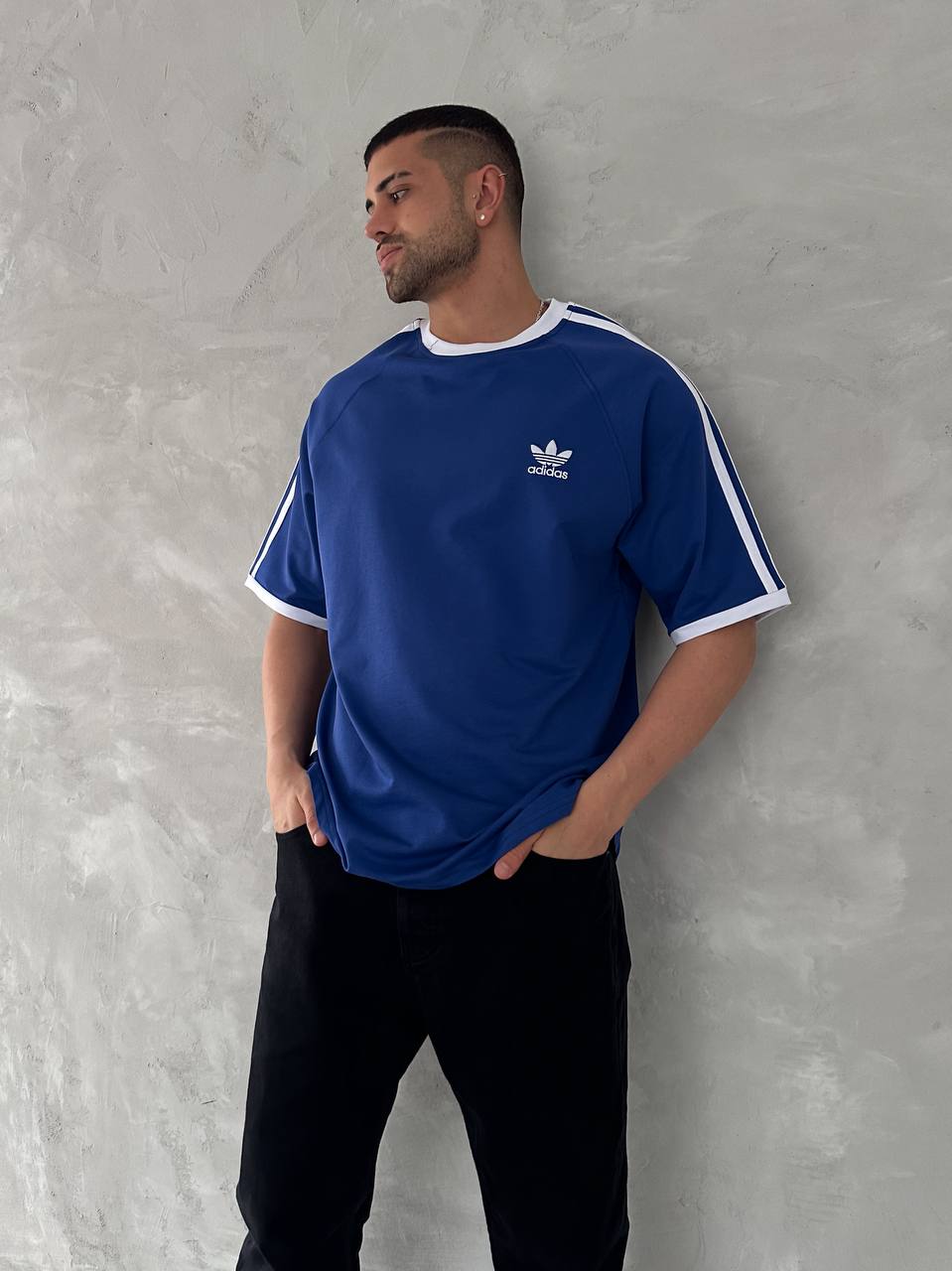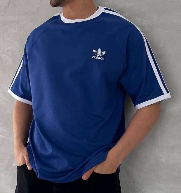 تيشيرت اديداس ازرق مخطط ابيض , قالب كبير