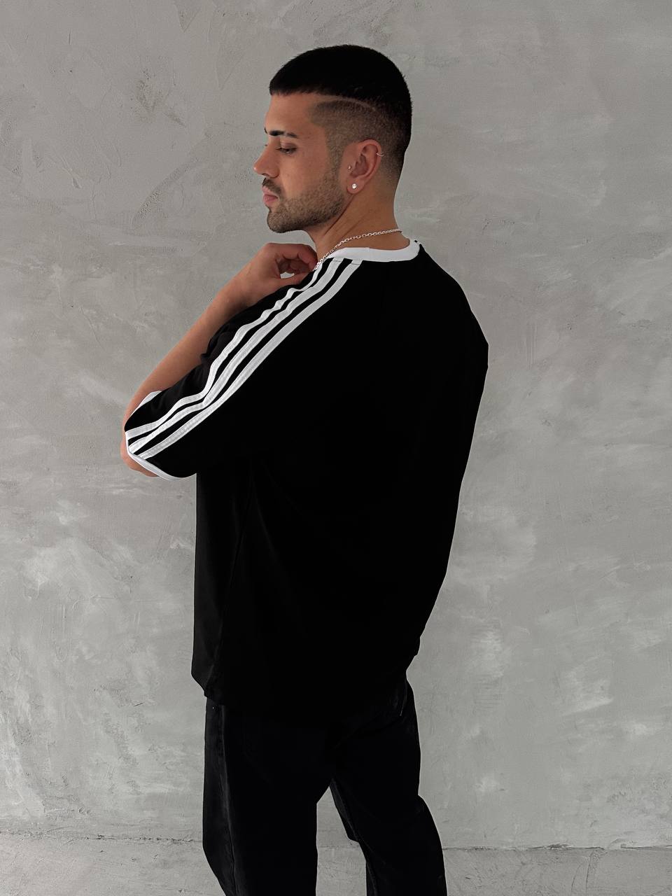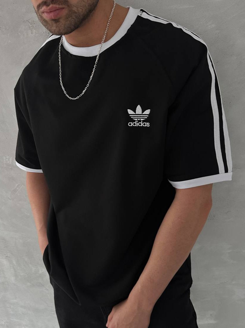 تيشيرت اديداس اسود مخطط ابيض , قالب كبير