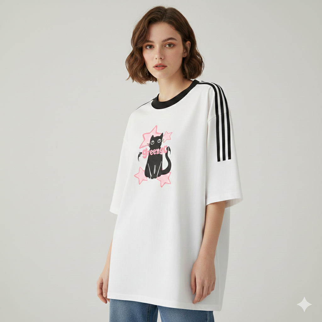 تيشيرت قط ونجوم بناتي , مخطط قالب كبير