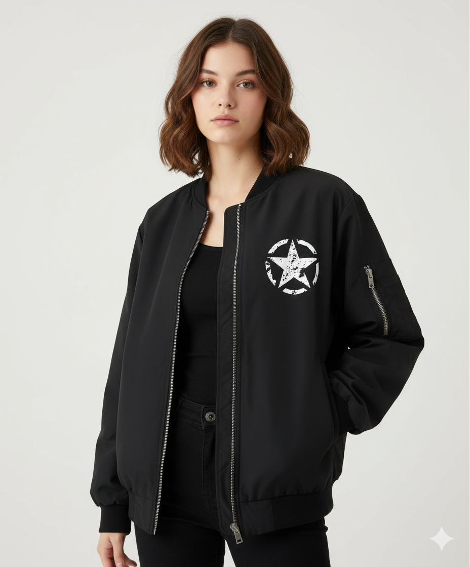 جاكيت اسود نجمة مطري مبطن