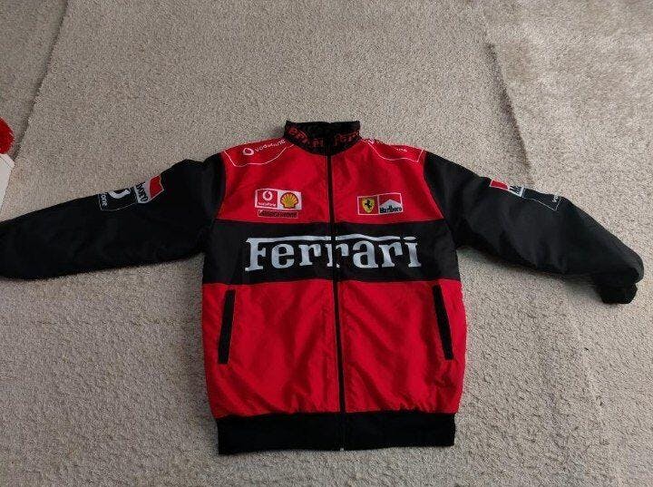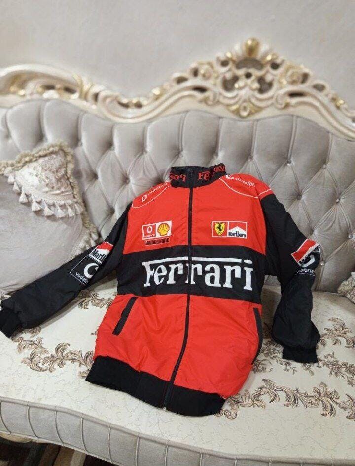 جاكيت فيراري احمر واسود مطري , مبطن