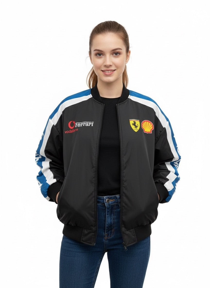 جاكيت فيراري اسود وسمائي مطري مبطن