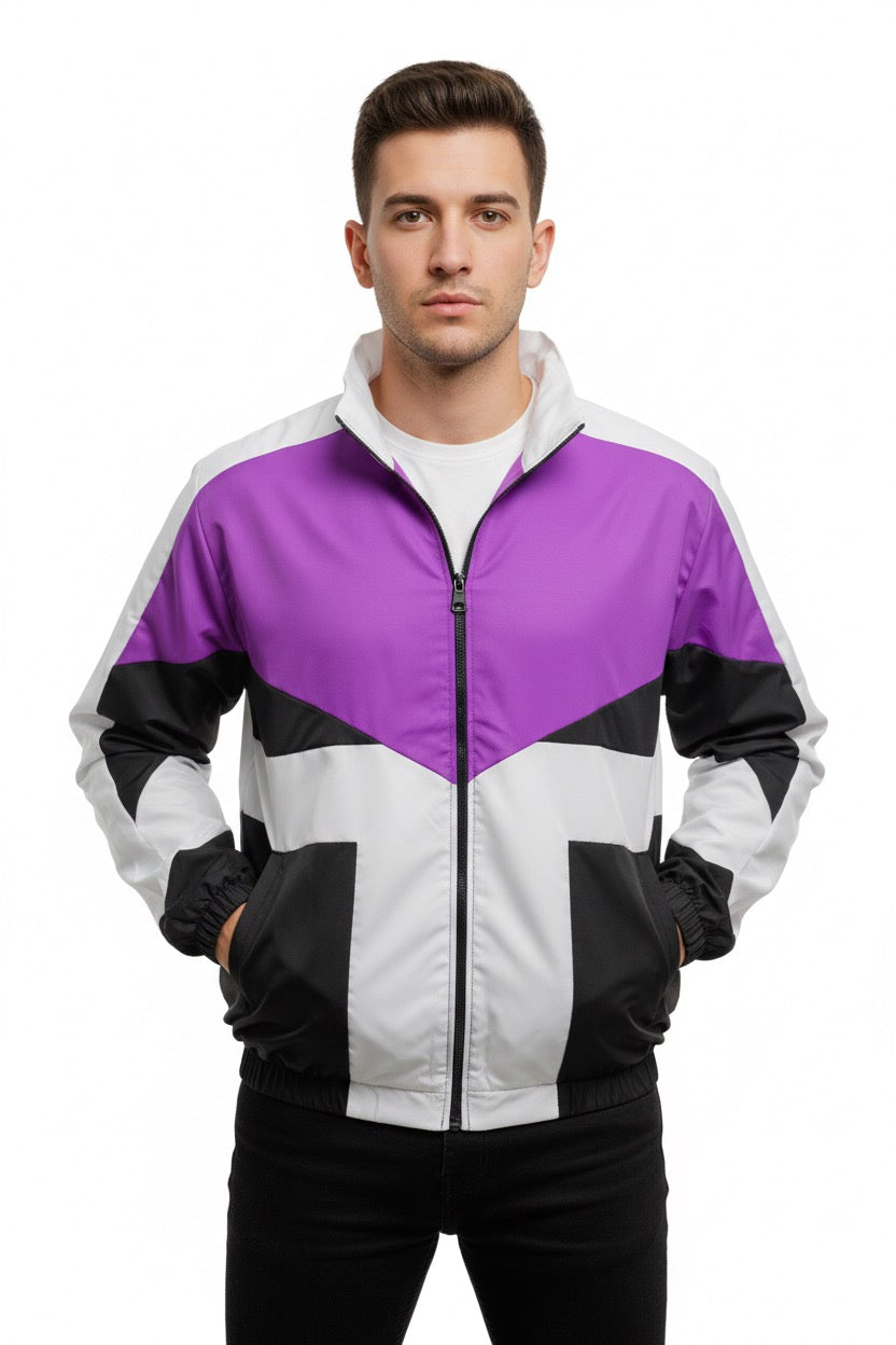 جاكيت بنفسجي وابيض مطري خفيف✅