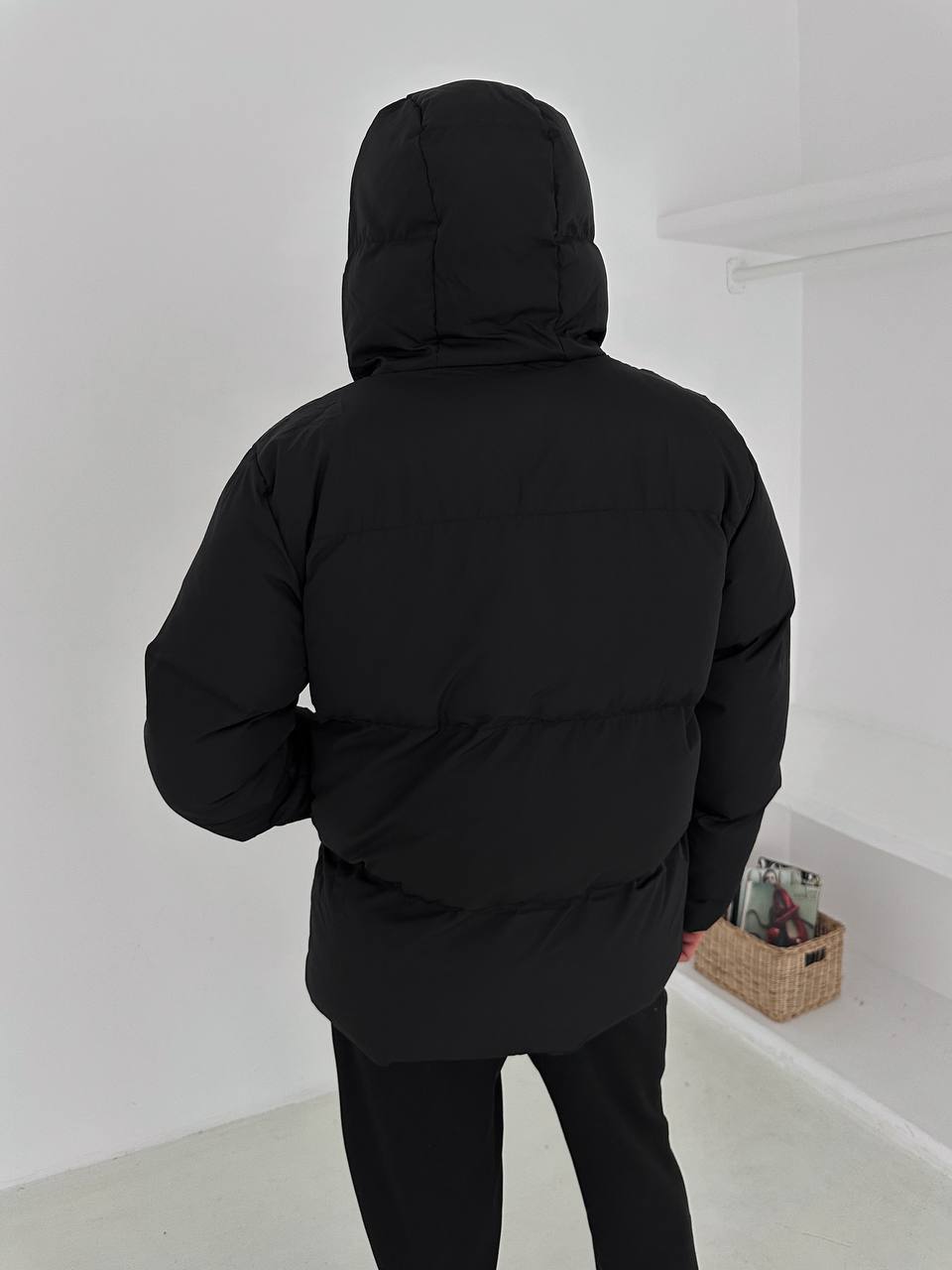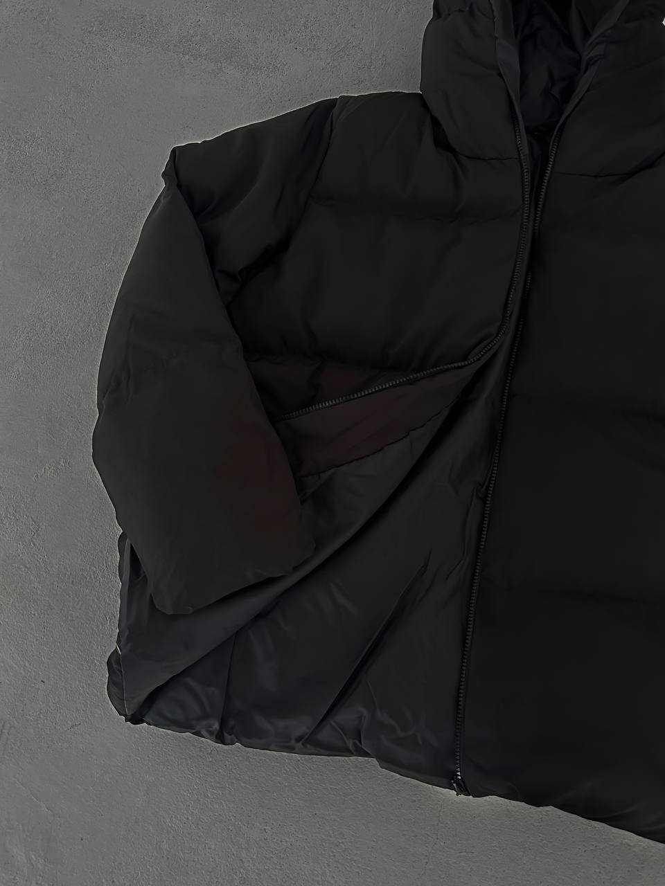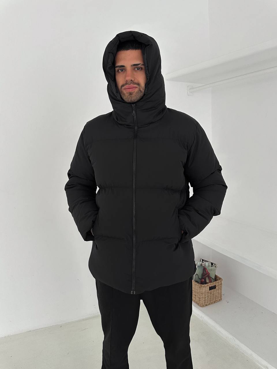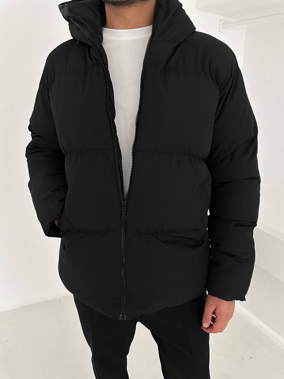 جاكيت نفخ طويل لون اسود , مطري , قالب كبير