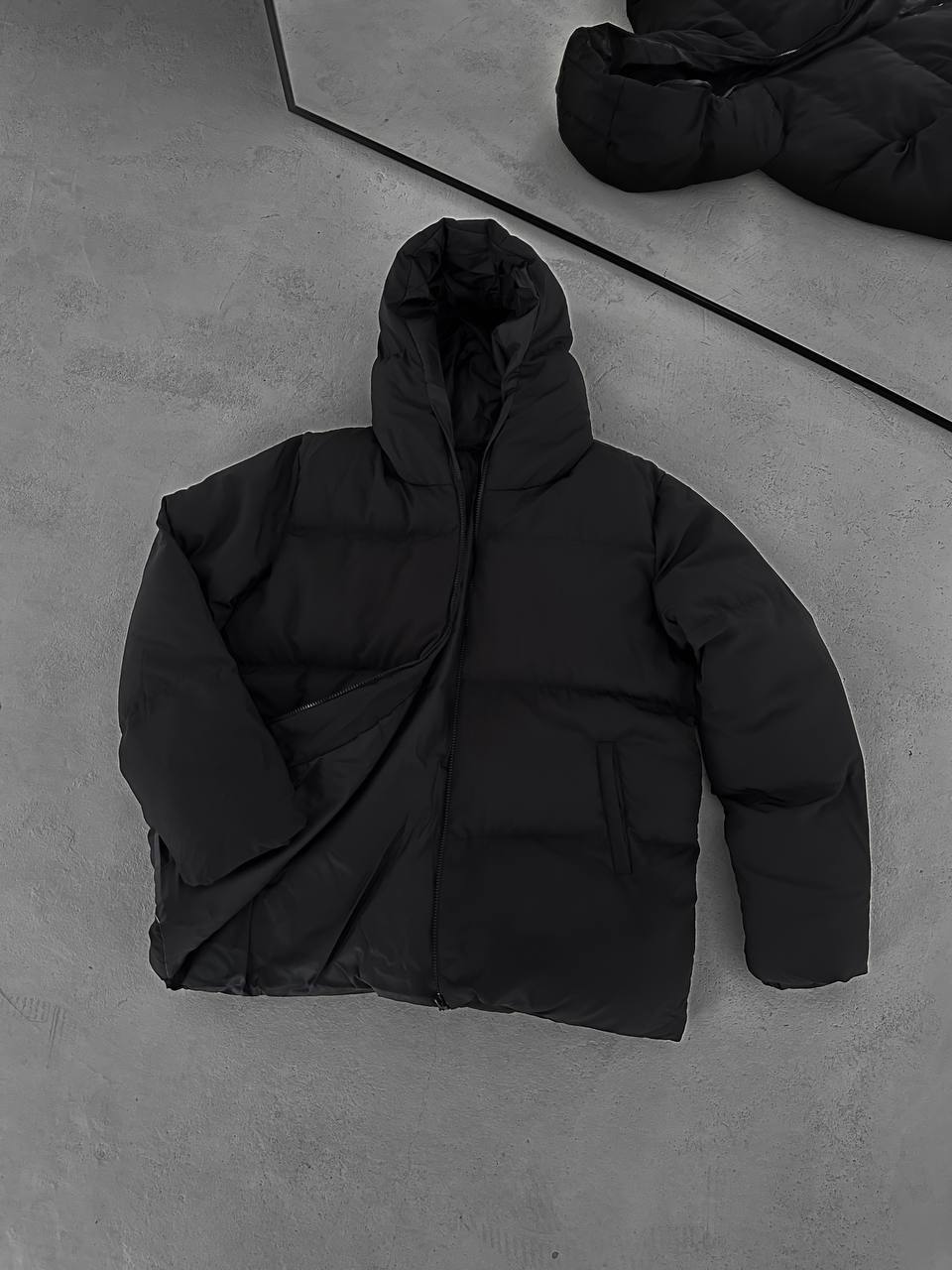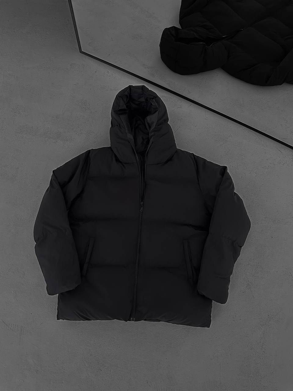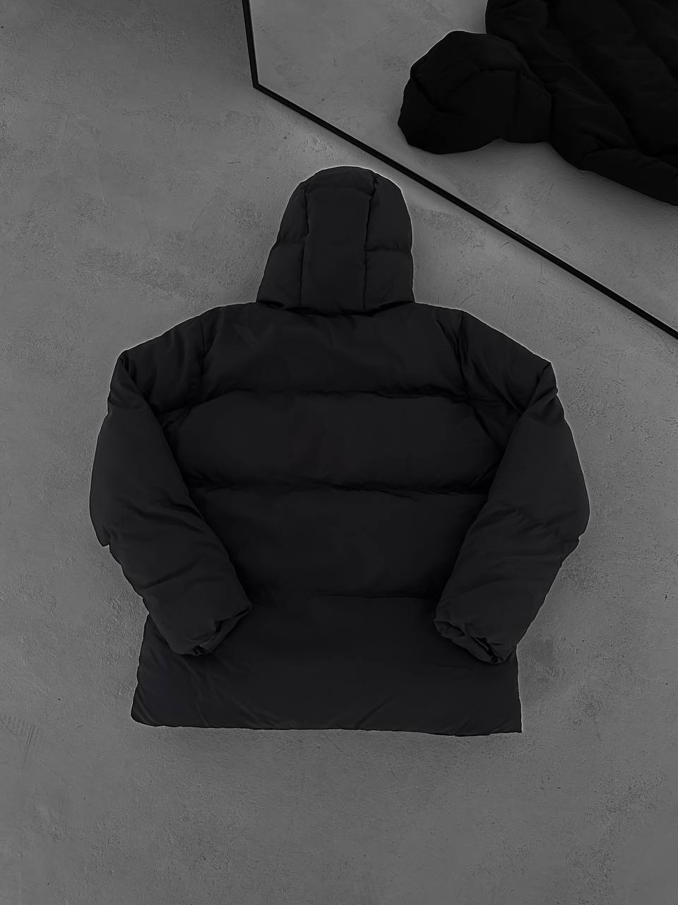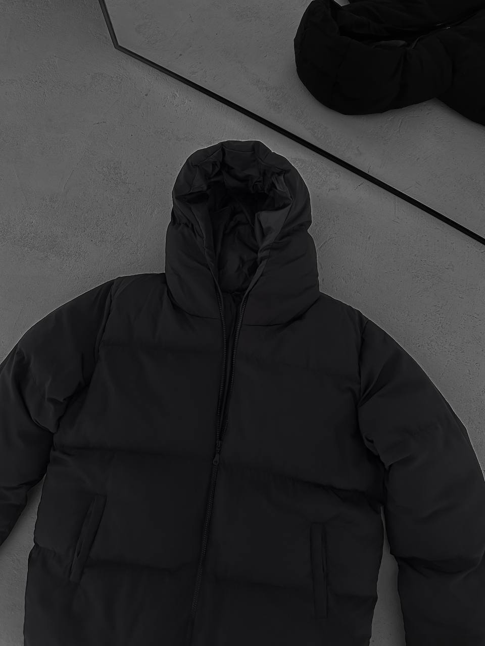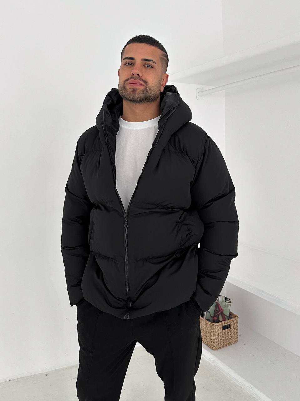 جاكيت نفخ طويل لون اسود , مطري , قالب كبير