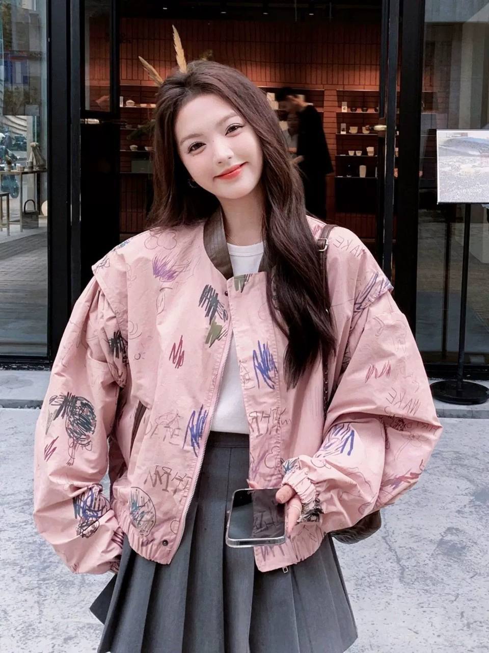 جاكيت وردي بناتي مطري ’ قالب طبيعي *
