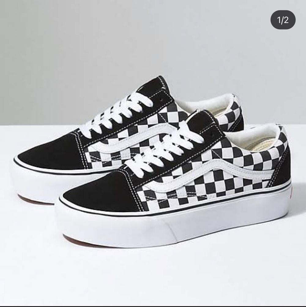حذاء فانس مربعات اسود وابيض ,قالب طبيعي (القياسات بين 36>40)