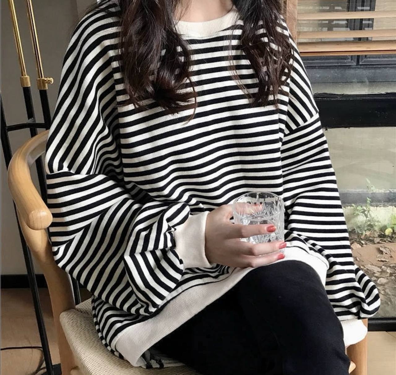 سويتر قطني مخطط اسود وابيض