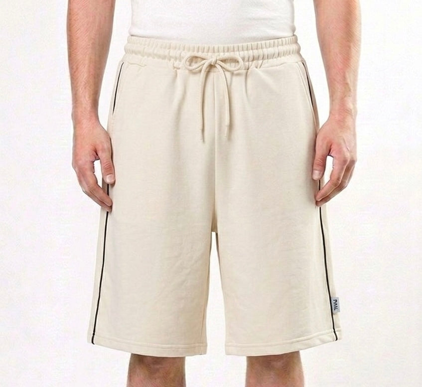 شورت حليبي سادة بخط اسود , قالب طبيعي