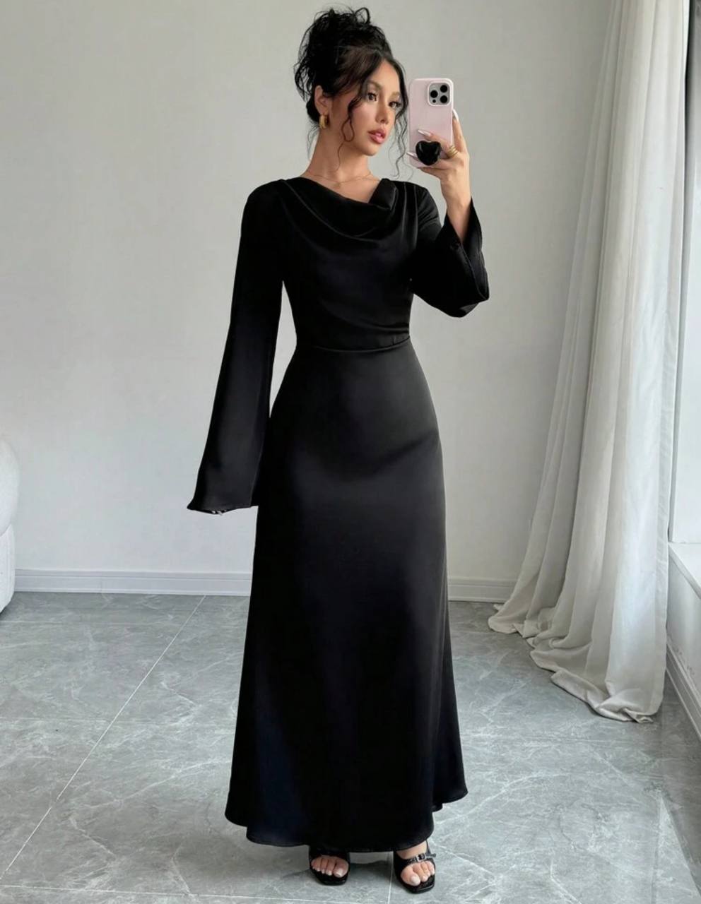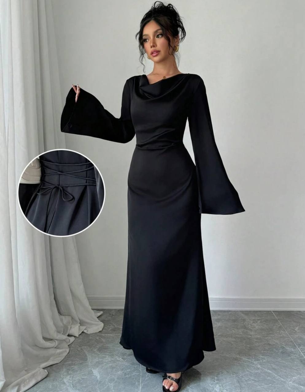 فستان اسود مخصر طويل - شي ان