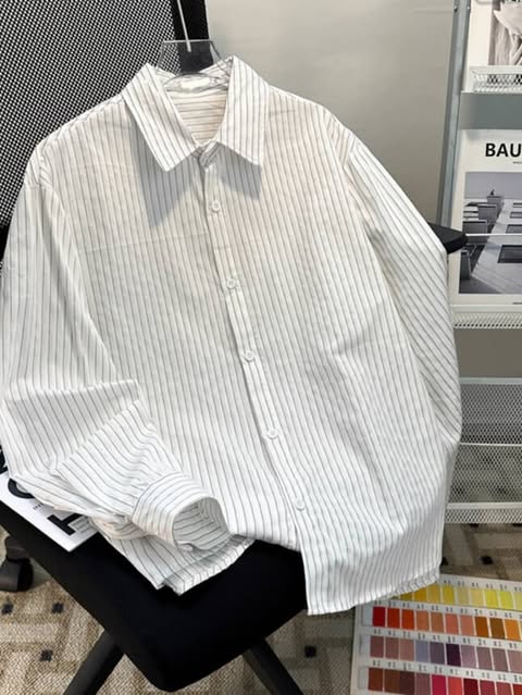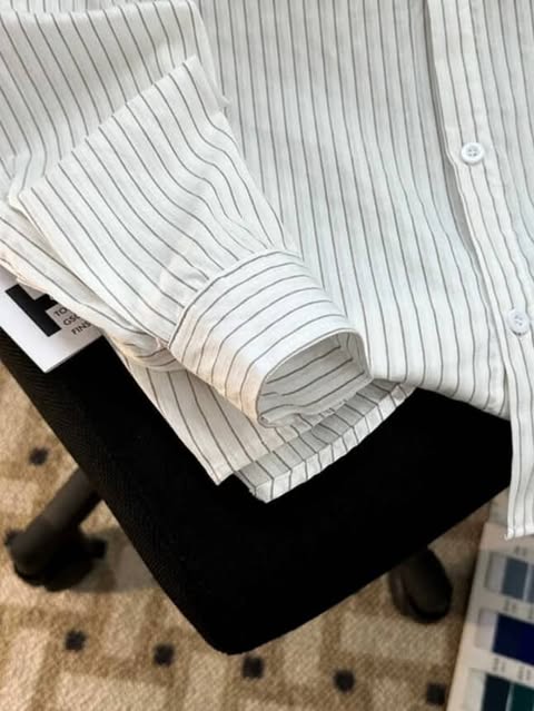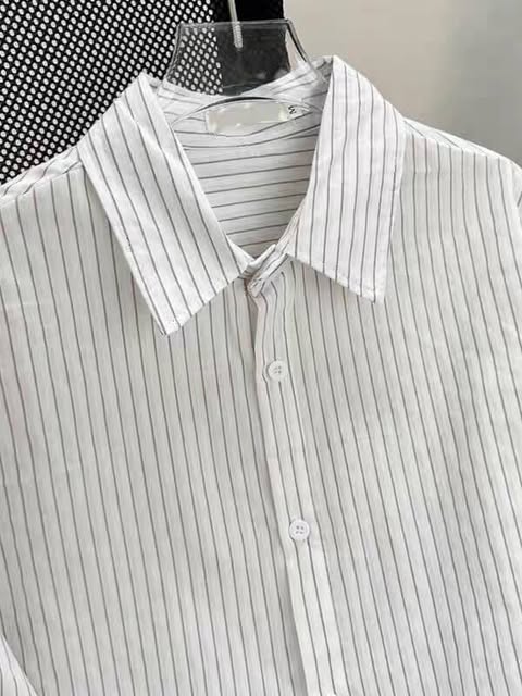 قميص بناتي مخطط قالب واسع ( ابيض - وردي ) *