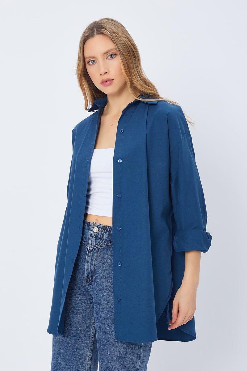 قميص نسائي مخروط الخصر ازرق ,قالب كبير