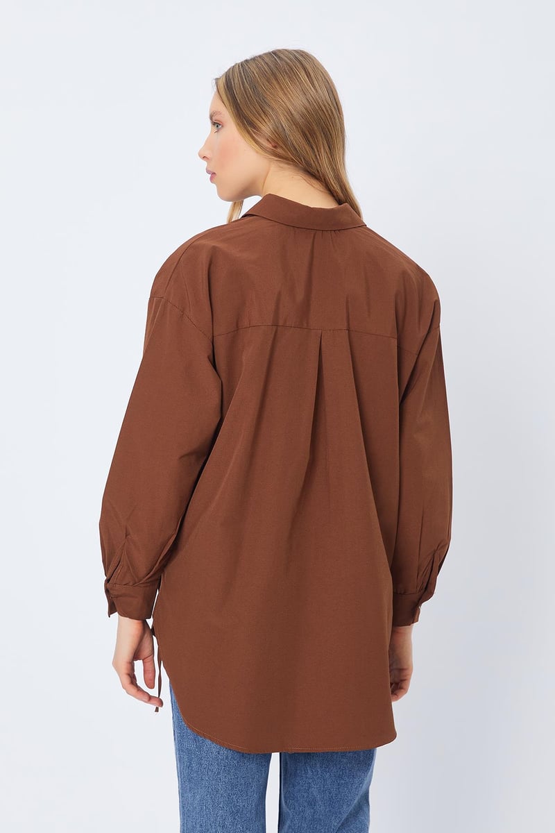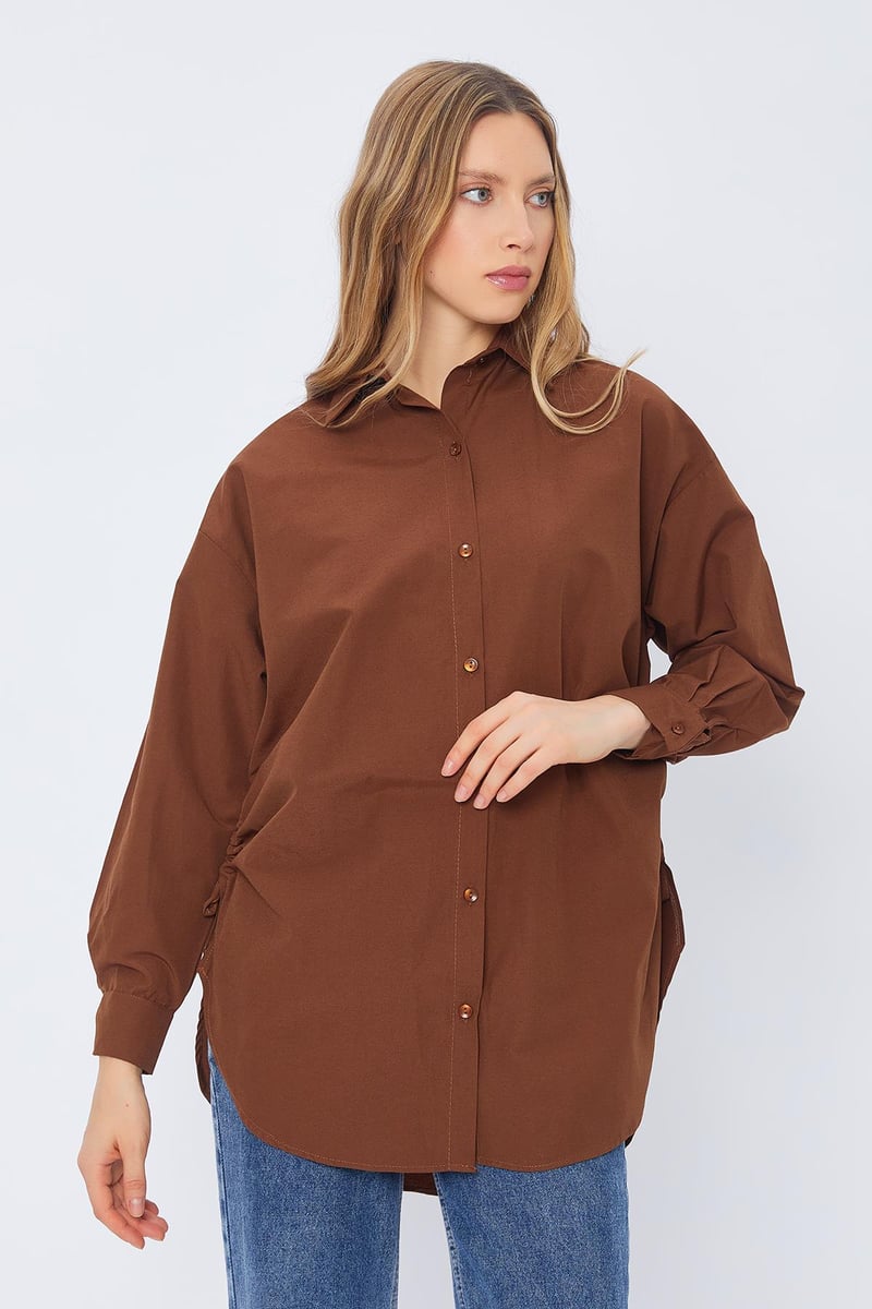 قميص نسائي مخروط الخصر قهوائي ,قالب كبير