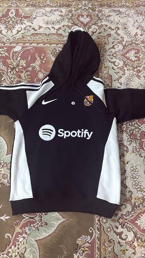 هودي نادي برشلونة نايك مخطط ابيض واسود ,قالب كبير