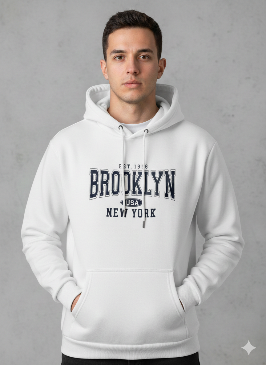 هودي نيو يورك بروكلي لون ابيض قالب طبيعي