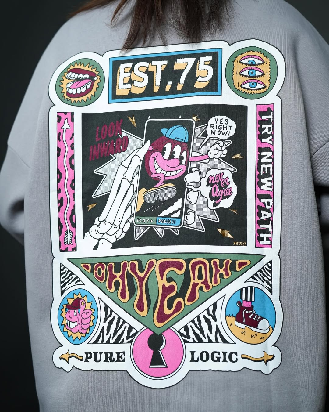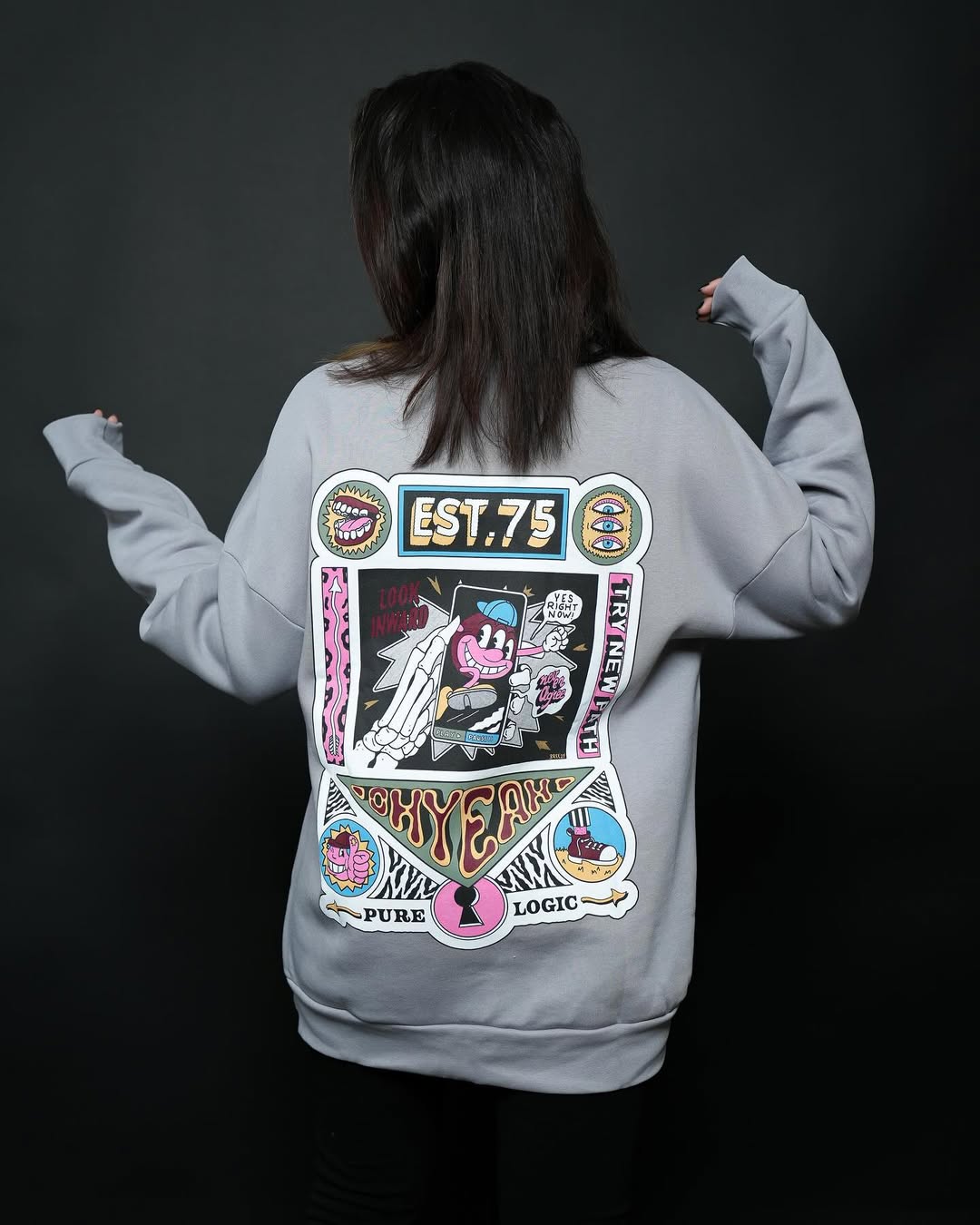 EST.75 - سويتر رجالي نسائي الاصدقاء رصاصي واسود